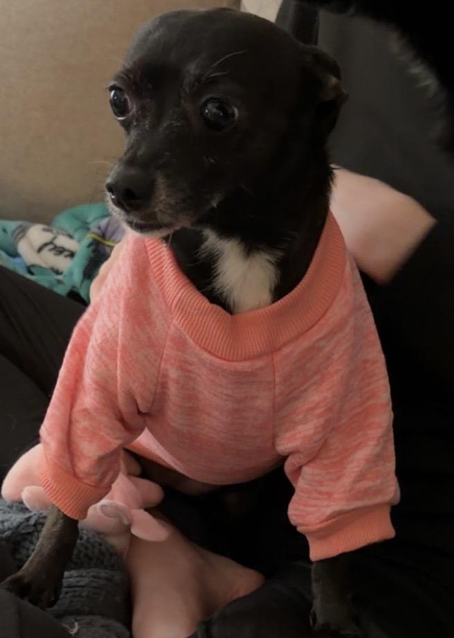 Delilah is a little freaked out and feisty being put in clothing. She refuses to walk while wearing it so I might end up with an arm full of puppies who are stubborn.Â
