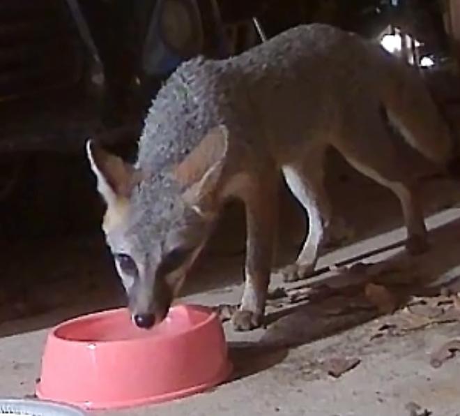A gorgeous fox stopped by for some water. We normally have opposums and sometimes a cat or two. But this little fox was so pretty. They only come around at night when my animals are safely inside or I wouldn't be putting anything down. I'm always with my pets outside just in case since they're so tiny.