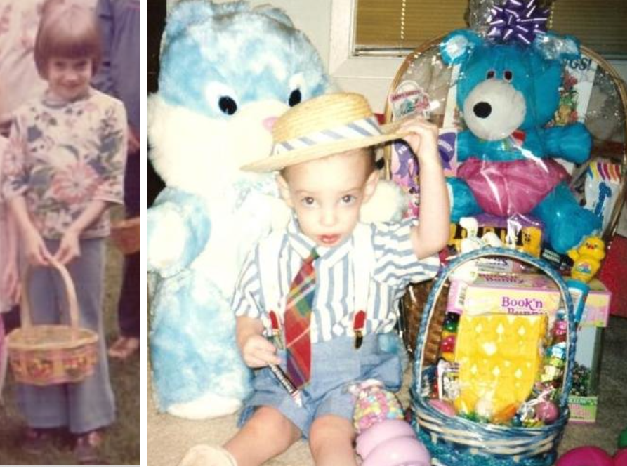 I was looking at some old Easter pics and thought it was funny how basic the pic of me was (hated the 1970s bowl haircuts) versus one of my firstborn when I went a wee bit overboard as a new