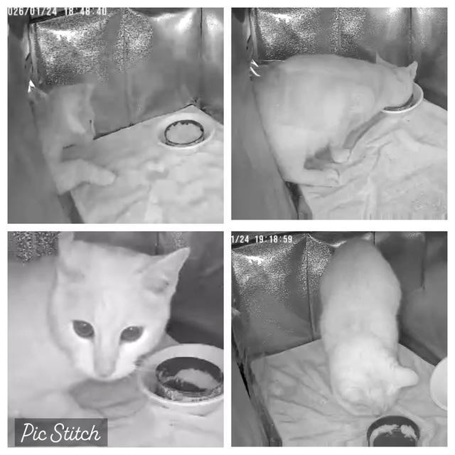 Power's still up here but less than 1 mile away a whole swath of homes lost power. Eek! I laced the cat house with catnip but it wasn't until I put a can of tuna in there that the little